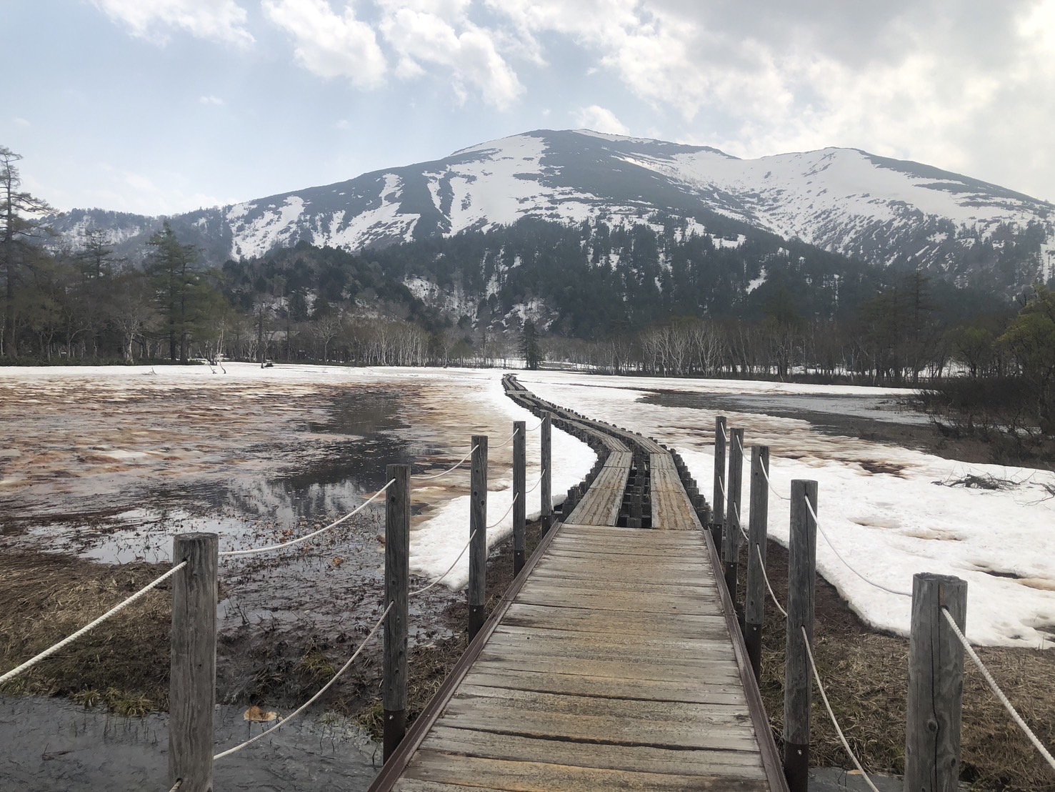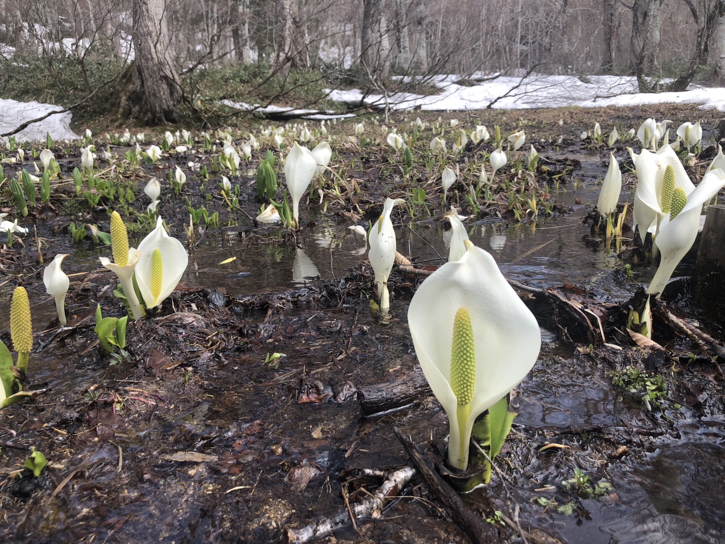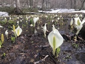2025/05/20現在の尾瀬ヶ原の様子 (2025. 5.20) 尾瀬ヶ原では雪解けが進み、水芭蕉が顔を覗かせ始めました。木道も隠れているところはない様子です。山間部や尾瀬沼方面はまだまだ雪の残る場所も多いので、十分にご注意くださいませ。